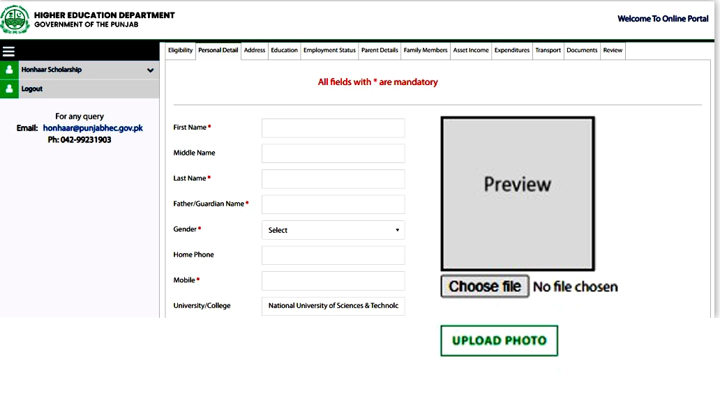 The Honhaar Scholarship Scheme officially closed on 18th October 2024. The Higher Education Department, Punjab, will now review the submitted applications and finalize the merit list. Successful candidates will be notified via email and SMS, so applicants are advised to regularly check their inboxes and messages.