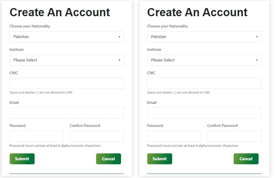 Select the ‘Register’ option to create a new account. Provide your CNIC, institution name, and email address. After completing all required fields, click on the ‘Submit’ button. Make sure to remember your password for future logins.