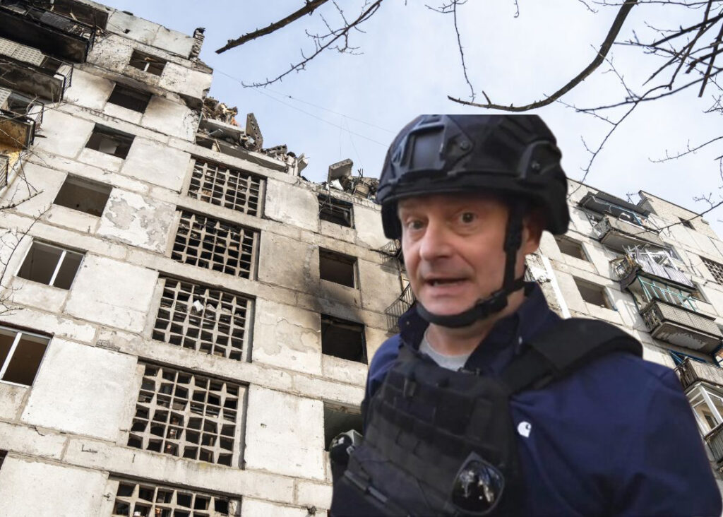 ‘All my windows were blown out—look, the entire second floor is gone. I’m the only one still here,’ he says.